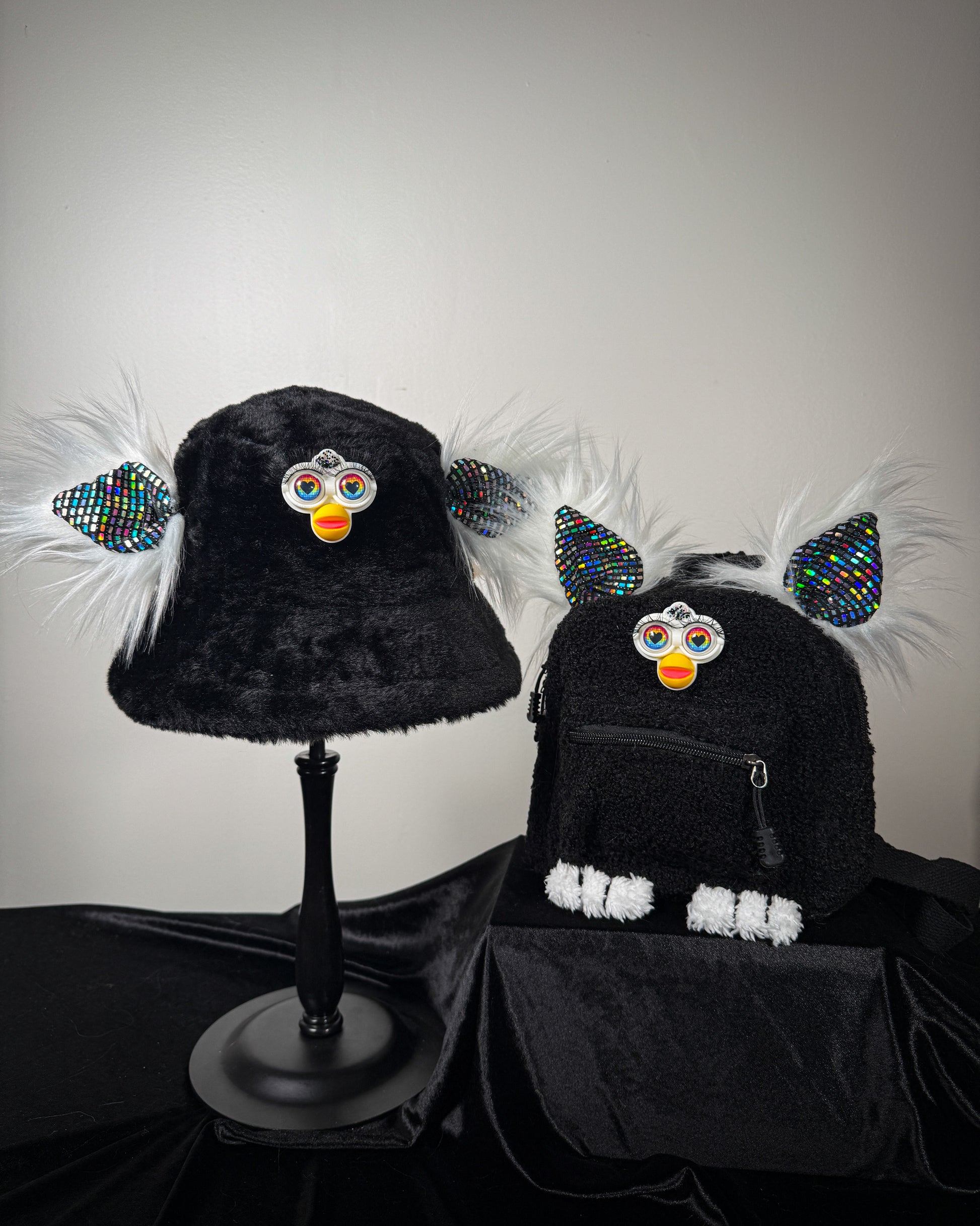 If you were at Electric Forest this year and missed Disco Dom, you messed up. Disco Dom is a matching hat and mini bag set that includes rainbow disco eyes and iridescent disco pattern ears. The mini bag also includes hand sewn and embroidered feet. Please note the eyelashes I use are fragile, I am not responsible for any damage that occurs after wearing.